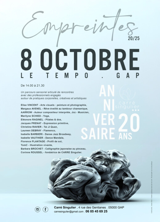 Je participe à l'événement organisé à l'occasion des 20 ans du Carré singulier, le mercredi 8 octobre 2025, à Gap : Empreintes.